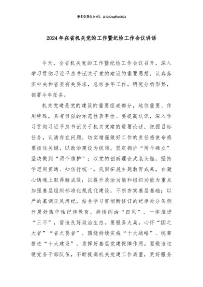 / 【七哥公文】2024年:2024年在省机关党的工作暨纪检工作会议讲话+更多免费公文+VX:QiGeGongWen2024