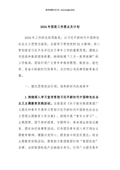 / 【七哥公文】2024年:2024年团委工作要点及计划+更多免费公文+VX:QiGeGongWen2024