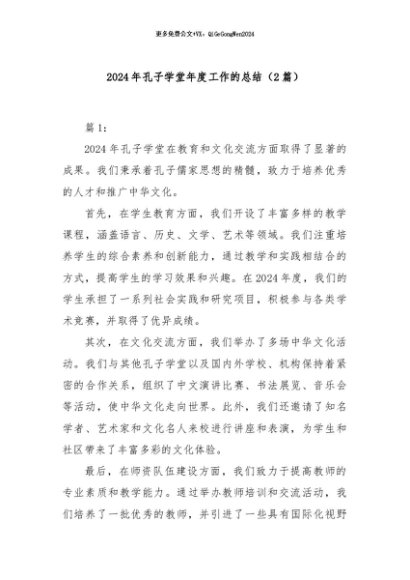 / 【七哥公文】2024年:2024年孔子学堂年度工作的总结+更多免费公文+VX:QiGeGongWen2024