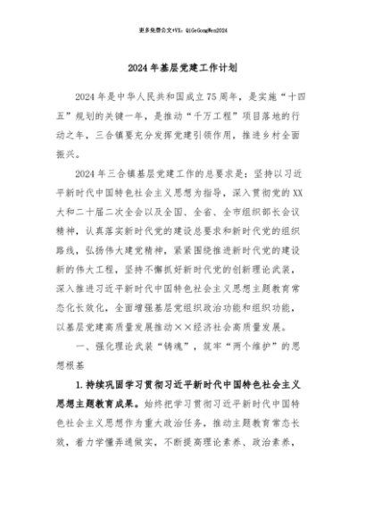 / 【七哥公文】2024年:2024年基层党建工作计划+更多免费公文+VX:QiGeGongWen2024
