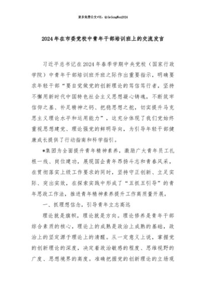 / 【七哥公文】2024年:2024年在市委党校中青年干部培训班上的交流发言+更多免费公文+VX:QiGeGongWen2024