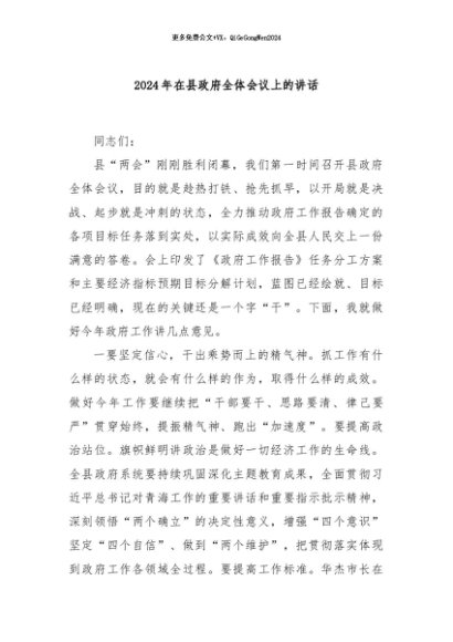 / 【七哥公文】2024年:2024年在县政府全体会议上的讲话+更多免费公文+VX:QiGeGongWen2024