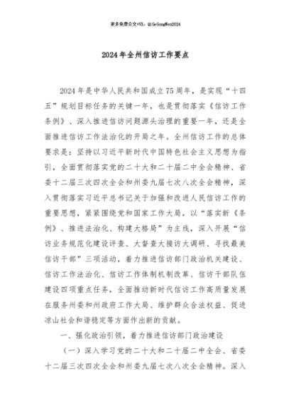 / 【七哥公文】2024年:2024年全州信访工作要点+更多免费公文+VX:QiGeGongWen2024