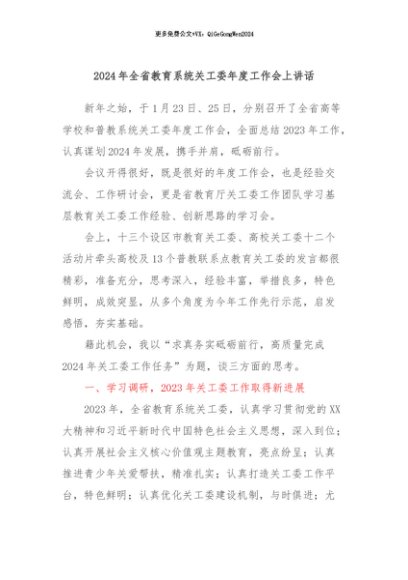 / 【七哥公文】2024年:2024年全省教育系统关工委年度工作会上讲话+更多免费公文+VX:QiGeGongWen2024