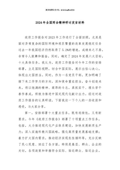 【七哥公文】2024年:2024年全国两会精神研讨发言材料+更多免费公文+VX:QiGeGongWen2024
