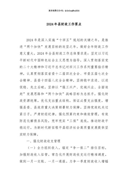 / 【七哥公文】2024年:2024年县财政工作要点+更多免费公文+VX:QiGeGongWen2024