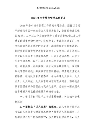 / 【七哥公文】2024年:2024年全市城市管理工作要点+更多免费公文+VX:QiGeGongWen2024