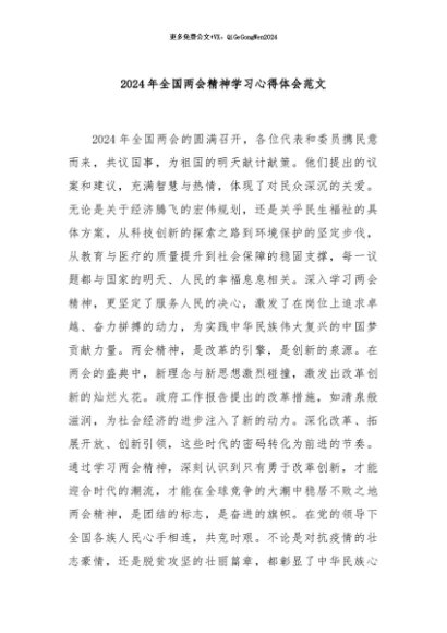 / 【七哥公文】2024年:2024年全国两会精神学习心得体会范文+更多免费公文+VX:QiGeGongWen2024