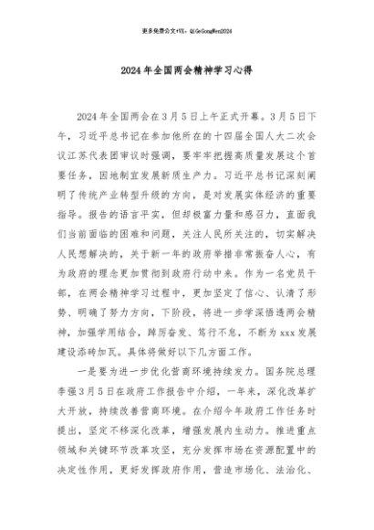【七哥公文】2024年:2024年全国两会精神学习心得.+更多免费公文+VX:QiGeGongWen2024
