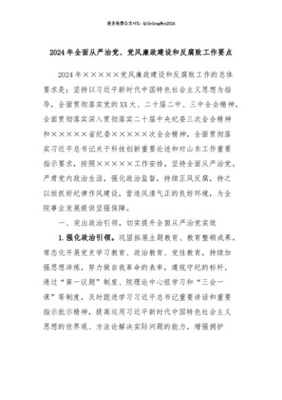 【七哥公文】2024年:2024年全面从严治党、党风廉政建设和反腐败工作要点+更多免费公文+VX:QiGeGongWen2024