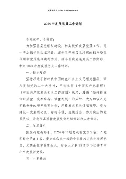 / 【七哥公文】2024年:2024年发展党员工作计划+更多免费公文+VX:QiGeGongWen2024