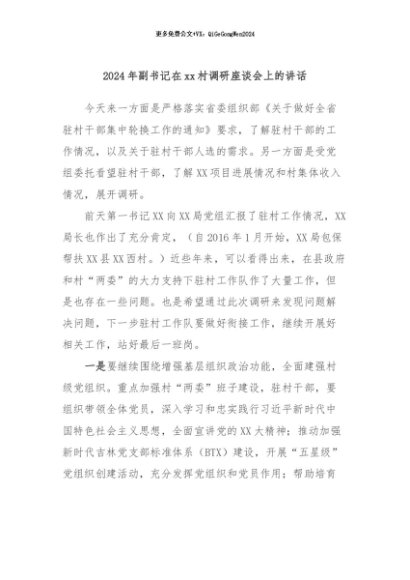 / 【七哥公文】2024年:2024年副书记在xx村调研座谈会上的讲话+更多免费公文+VX:QiGeGongWen2024
