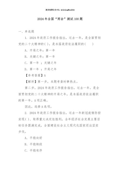 【七哥公文】2024年:2024年全国“两会”测试100题+更多免费公文+VX:QiGeGongWen2024