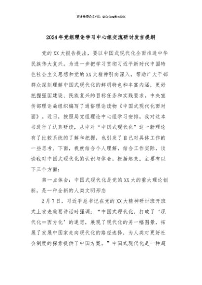 / 【七哥公文】2024年:2024年党组理论学习中心组交流研讨发言提纲+更多免费公文+VX:QiGeGongWen2024