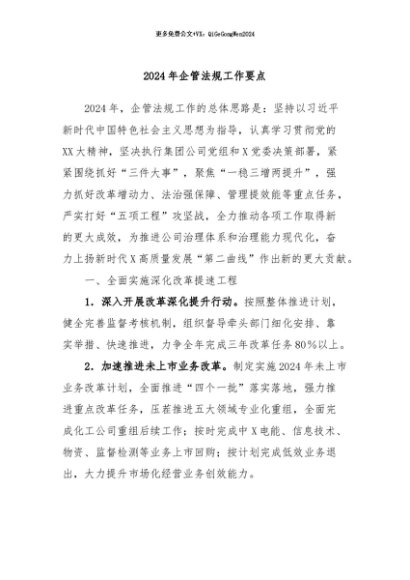 / 【七哥公文】2024年:2024年企管法规工作要点+更多免费公文+VX:QiGeGongWen2024
