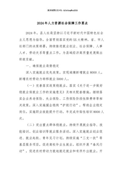 / 【七哥公文】2024年:2024年人力资源社会保障工作要点+更多免费公文+VX:QiGeGongWen2024