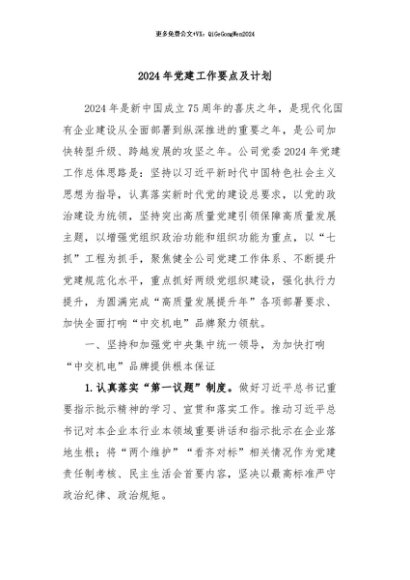 / 【七哥公文】2024年:2024年党建工作要点及计划+更多免费公文+VX:QiGeGongWen2024