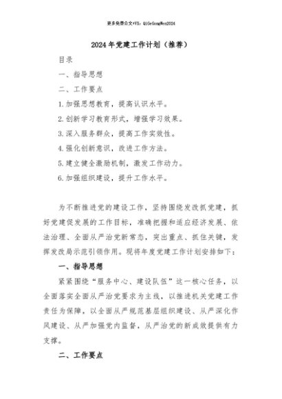 / 【七哥公文】2024年:2024年党建工作计划(推荐)+更多免费公文+VX:QiGeGongWen2024