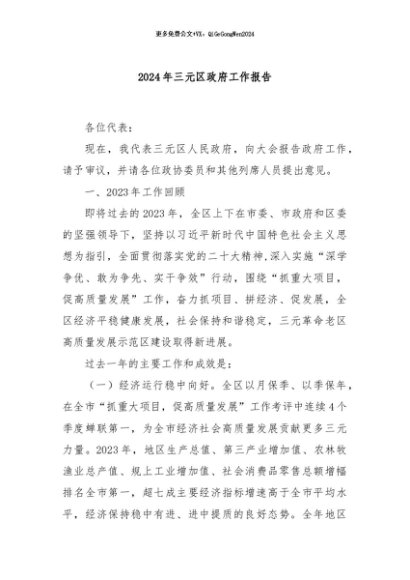 / 【七哥公文】2024年:2024年三元区政府工作报告+更多免费公文+VX:QiGeGongWen2024
