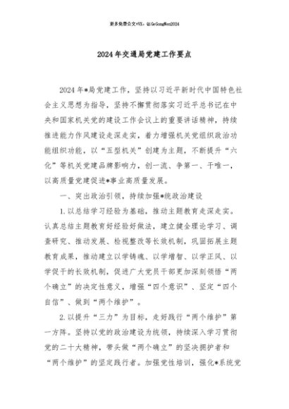 / 【七哥公文】2024年:2024年交通局党建工作要点+更多免费公文+VX:QiGeGongWen2024