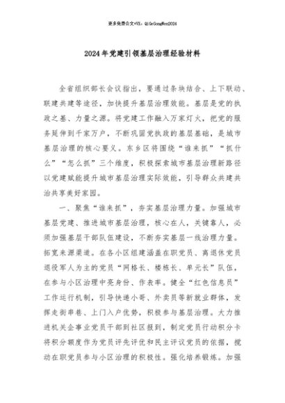 / 【七哥公文】2024年:2024年党建引领基层治理经验材料+更多免费公文+VX:QiGeGongWen2024