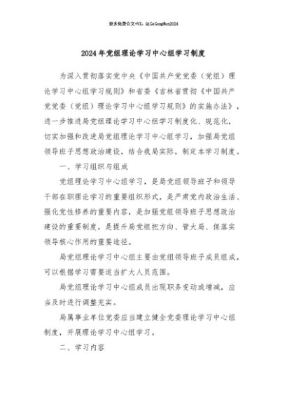 / 【七哥公文】2024年:2024年党组理论学习中心组学习制度+更多免费公文+VX:QiGeGongWen2024