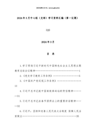 【七哥公文】2024年:2024年3月中心组(支部)学习资料汇编(第一议题)(2)+更多免费公文+VX:QiGeGongWen2024