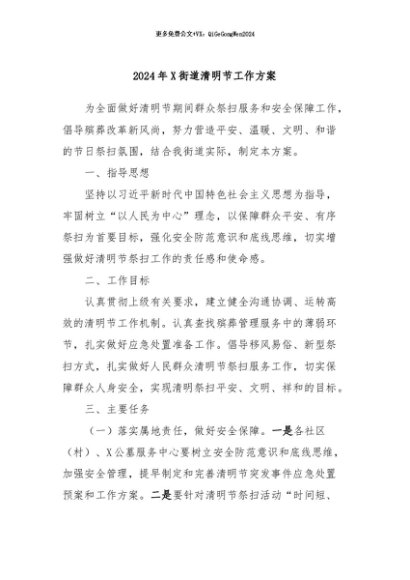 / 【七哥公文】2024年:2024年X街道清明节工作方案+更多免费公文+VX:QiGeGongWen2024