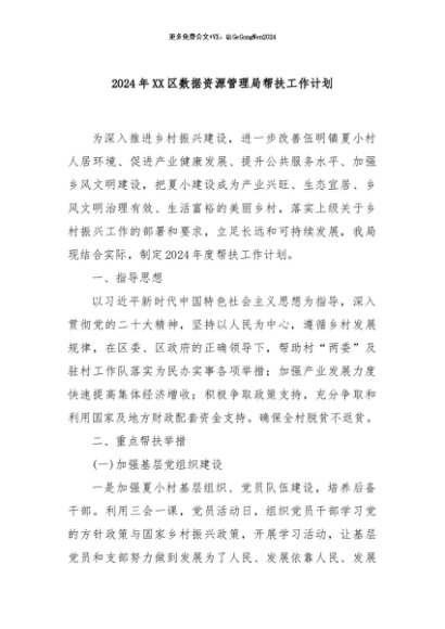 / 【七哥公文】2024年:2024年XX区数据资源管理局帮扶工作计划+更多免费公文+VX:QiGeGongWen2024