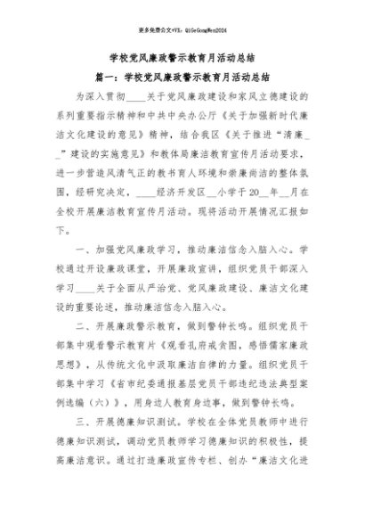 【七哥公文】2024年:(11篇)学校党风廉政警示教育月活动总结+更多免费公文+VX:QiGeGongWen2024
