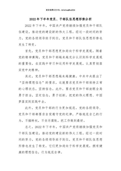 / 【七哥公文】2024年:2022年下半年党员、干部队伍思想形势分析+更多免费公文+VX:QiGeGongWen2024