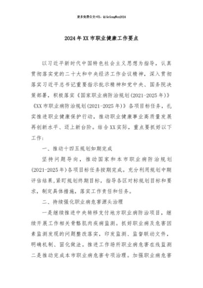 / 【七哥公文】2024年:2024年XX市职业健康工作要点+更多免费公文+VX:QiGeGongWen2024