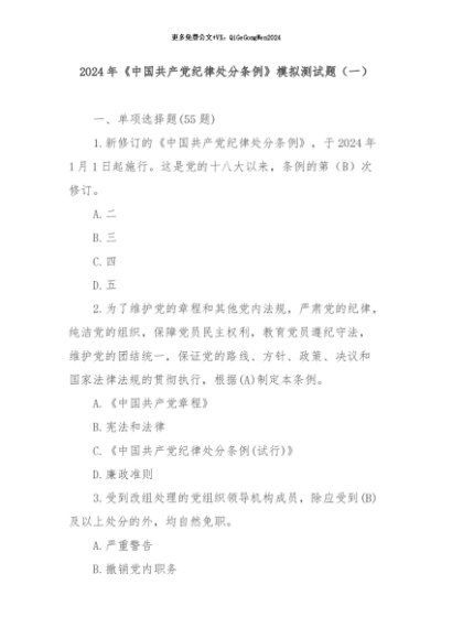 【七哥公文】2024年:2024年《中国共产党纪律处分条例》模拟测试题(一)+更多免费公文+VX:QiGeGongWen2024