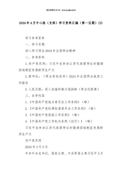 【七哥公文】2024年:2024年4月中心组(支部)学习资料汇编(第一议题)+更多免费公文+VX:QiGeGongWen2024