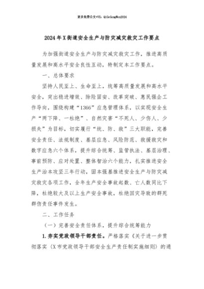 / 【七哥公文】2024年:2024年X街道安全生产与防灾减灾救灾工作要点+更多免费公文+VX:QiGeGongWen2024