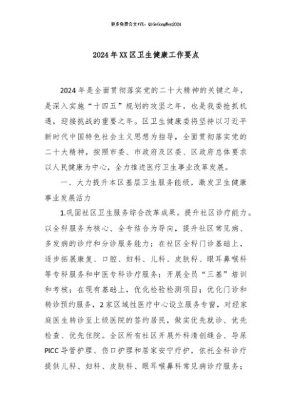 / 【七哥公文】2024年:2024年XX区卫生健康工作要点+更多免费公文+VX:QiGeGongWen2024