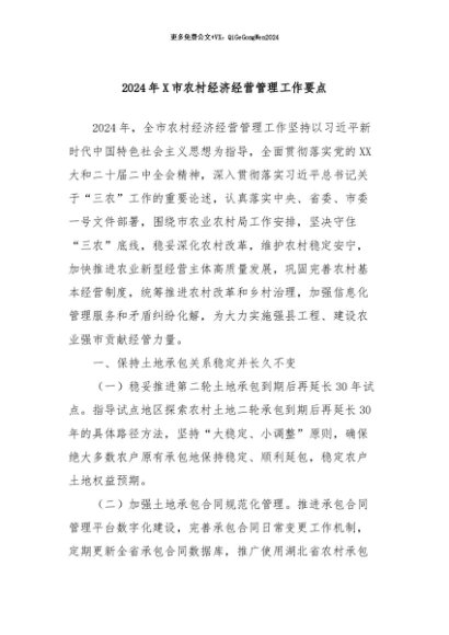 / 【七哥公文】2024年:2024年X市农村经济经营管理工作要点+更多免费公文+VX:QiGeGongWen2024
