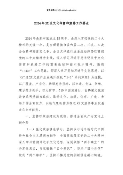 / 【七哥公文】2024年:2024年XX区文化体育和旅游工作要点+更多免费公文+VX:QiGeGongWen2024