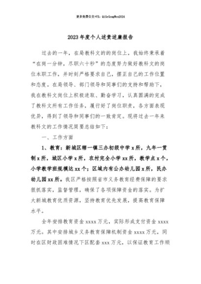 / 【七哥公文】2024年:2023年度个人述责述廉报告 (1)+更多免费公文+VX:QiGeGongWen2024