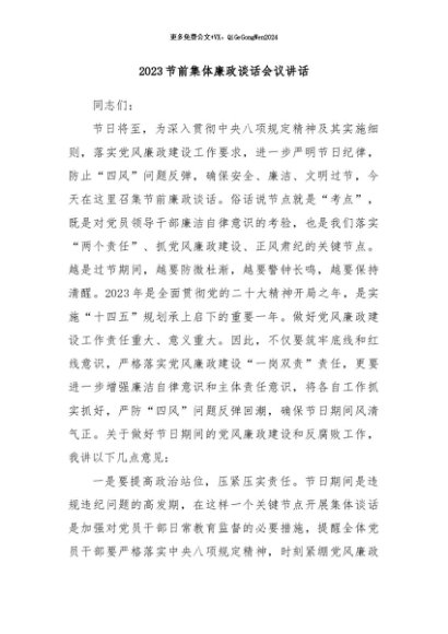 / 【七哥公文】2024年:2023节前集体廉政谈话会议讲话+更多免费公文+VX:QiGeGongWen2024