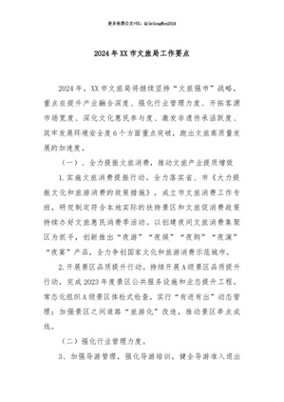 / 【七哥公文】2024年:2024年XX市文旅局工作要点+更多免费公文+VX:QiGeGongWen2024