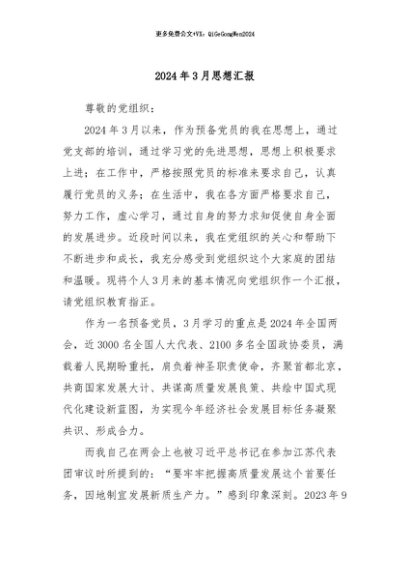 / 【七哥公文】2024年:2024年3月思想汇报+更多免费公文+VX:QiGeGongWen2024