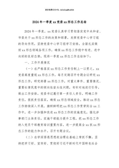 / 【七哥公文】2024年:2024年一季度xx党委xx形态工作总结+更多免费公文+VX:QiGeGongWen2024