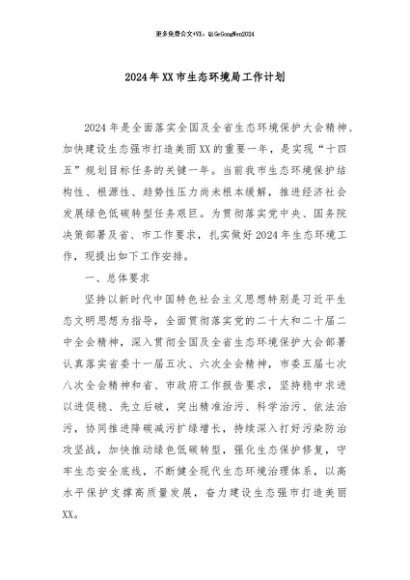 / 【七哥公文】2024年:2024年XX市生态环境局工作计划+更多免费公文+VX:QiGeGongWen2024