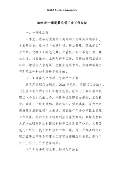 / 【七哥公文】2024年:2024年一季度某公司工会工作总结+更多免费公文+VX:QiGeGongWen2024