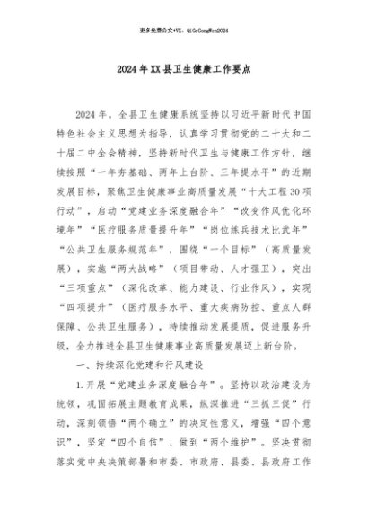 / 【七哥公文】2024年:2024年XX县卫生健康工作要点+更多免费公文+VX:QiGeGongWen2024