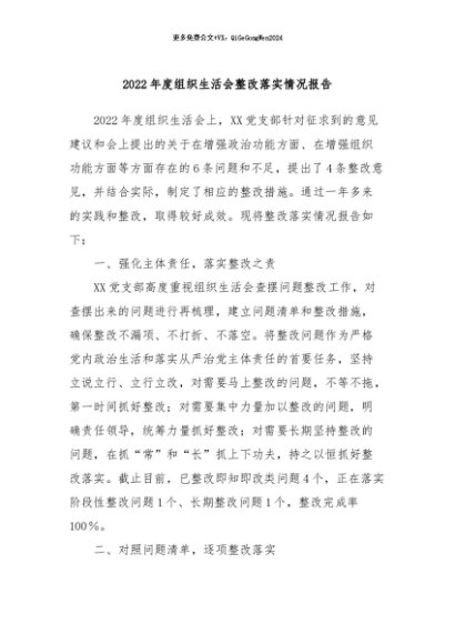 / 【七哥公文】2024年:2022年度组织生活会整改落实情况报告+更多免费公文+VX:QiGeGongWen2024