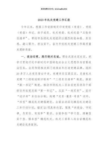 / 【七哥公文】2024年:2023年机关党建工作汇报+更多免费公文+VX:QiGeGongWen2024