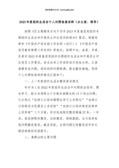 【七哥公文】2024年:2023年度组织生活会个人对照检查材料(办公室、领导)+更多免费公文+VX:QiGeGongWen2024