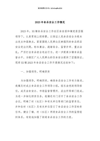 【七哥公文】2024年:2023年食品安全工作情况+更多免费公文+VX:QiGeGongWen2024